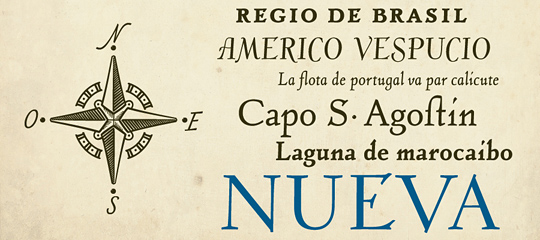 On my first try to create a fully functional, universally useful digital typeface, I soon realised that mere tracing of selected single characters would not lead me to a satisfying result: the characters that were formed individually by engraving did only work in their specific context of lettering, but not combined with others taken from other words. So I decided to redraw each character and, without giving up the basic impression of the typeface, to unify and streamline details, so they could work together in all contexts. In 2010, Tierra Nueva has gone a long way. On its journey of exploration it has grown to 4 members of a family (regular, bold, italic and script) with an overall count of almost 3.700 characters for different languages and purposes. So, over 6 years after the start of the expedition, it shall be launched. Land ahoy!”