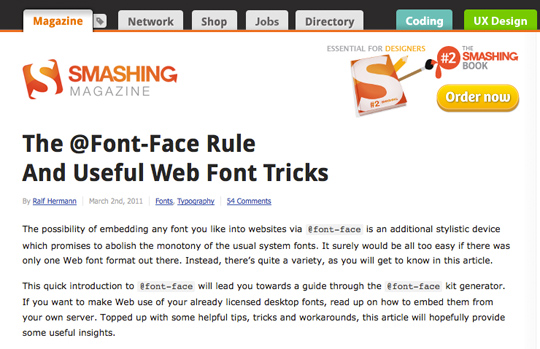 I love Google Webfonts - finally a way to design with Typography. I remember about 6-7 years ago using a flash format to do this, but it was a mess.
