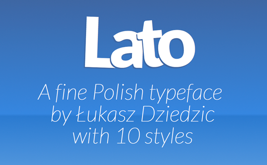 Polish type designer Łukasz Dziedzic has brought us great commercial typefaces such as FF Clan. The Lato family was originally conceived as a set of corporate fonts for a large client, but since this client later decided to go in different stylistic direction, this nice type family became Open Source. While the roman styles have a rather neutral appearance, the italics look great in larger sizes and with 10 styles (including hairline fonts) you have a great typographic variety when using this type family for websites.