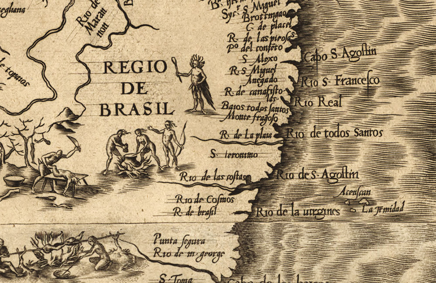 I simply love old maps. The are a testament of how people imagined the world around them. When I came across the map of America from Diego Gutierrez from the year 1562 I was blown away by the richness of detail. I especially like the type which was entirely made as copperplate engravings and consisted of several alphabets, including a Roman, a title-case version and a delicate italic.