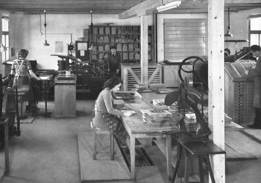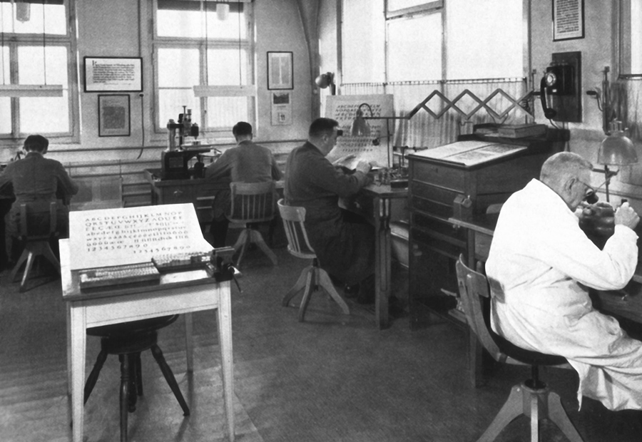 The Haas Type Foundry in Switzerland brought us famous typefaces such as Helvetica (originally called Neue Haas Grotesk). Here are some pictures of the type foundry from around 1950. Enjoy!