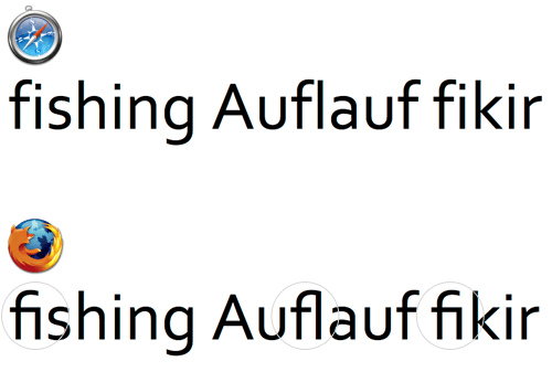 Firefox 3 supports a few layout features of fonts with OpenType or AAT (Apple Advanced Typography) tables. The most obvious one is basic ligatures. In this example you can see the typical f-ligatures that are common in latin fonts and are now used by default in Firefox 3, if the font supports this feature.